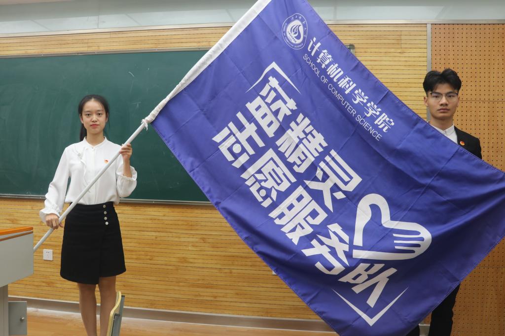 会上,安琪宣读了《2019-2020学年计算机科学学院学生组织干部任职决定》,陈慧洁、宋澳华任院团委副书记,王越任院学生会主席,张晓燕、李嘉琪、赵凯、加尼别克·加生、张铖歆任院学生会副主席,郭琳任院肉漫画主任,曹宇宁、李雨晨任院肉漫画副主任,李艳任计算机科学协会主席,王静雯、高令艺任计算机科学协会副主席,卢臻玄任蓝精灵志愿服务队队长,于振波、王正平任蓝精灵志愿服务队副队长。袁冰、崔瑜璠还分别为学生会、肉漫画、计算机科学协会和蓝精灵志愿服务队授旗。