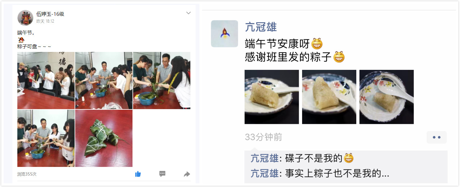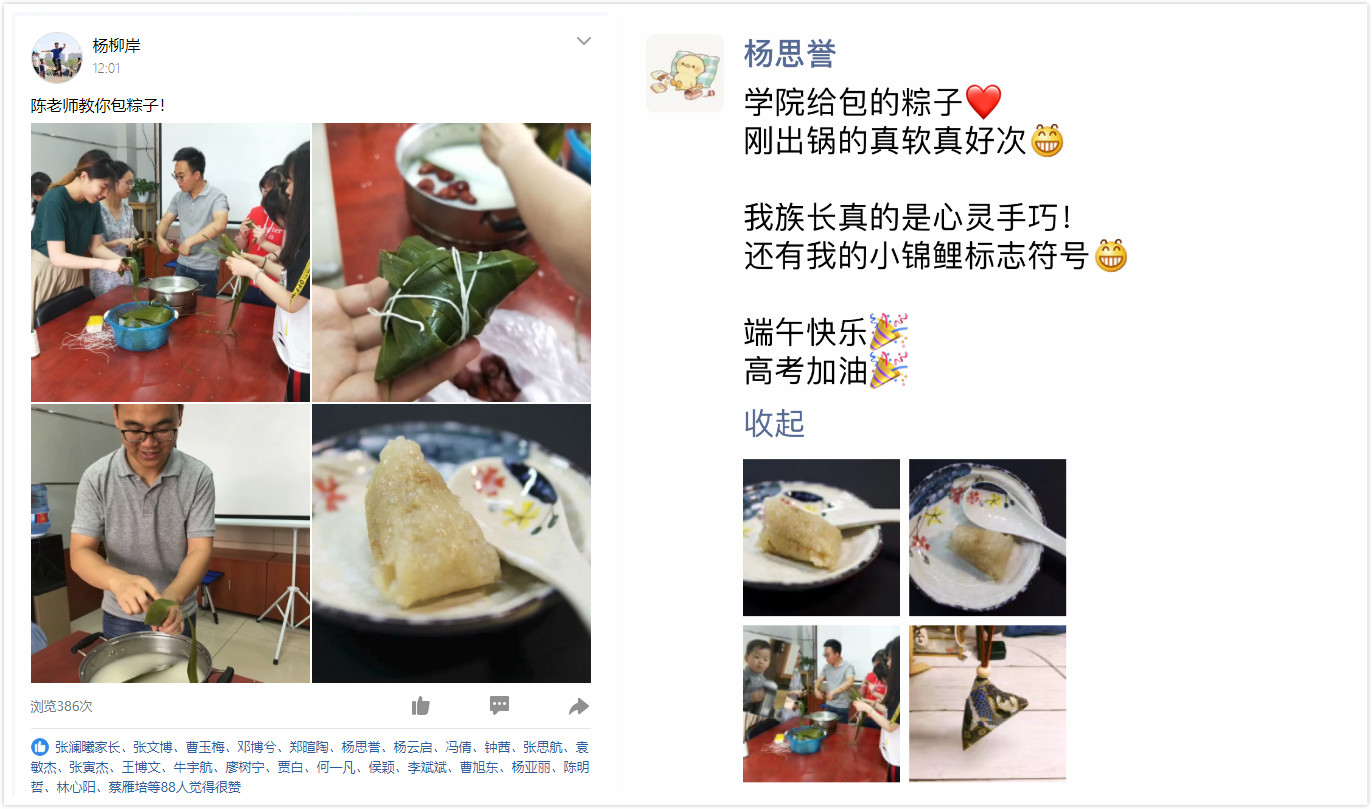 一只青粽,一缕浓情。学院开展师生包粽子活动,既让大家在品味传统文化、感受传统民俗的同时,丰富了师生生活,又增进了师生情谊,让每一个在外求学的计科人体会到学院大家庭的温暖和关爱,感受到师大生活的幸福和美好。