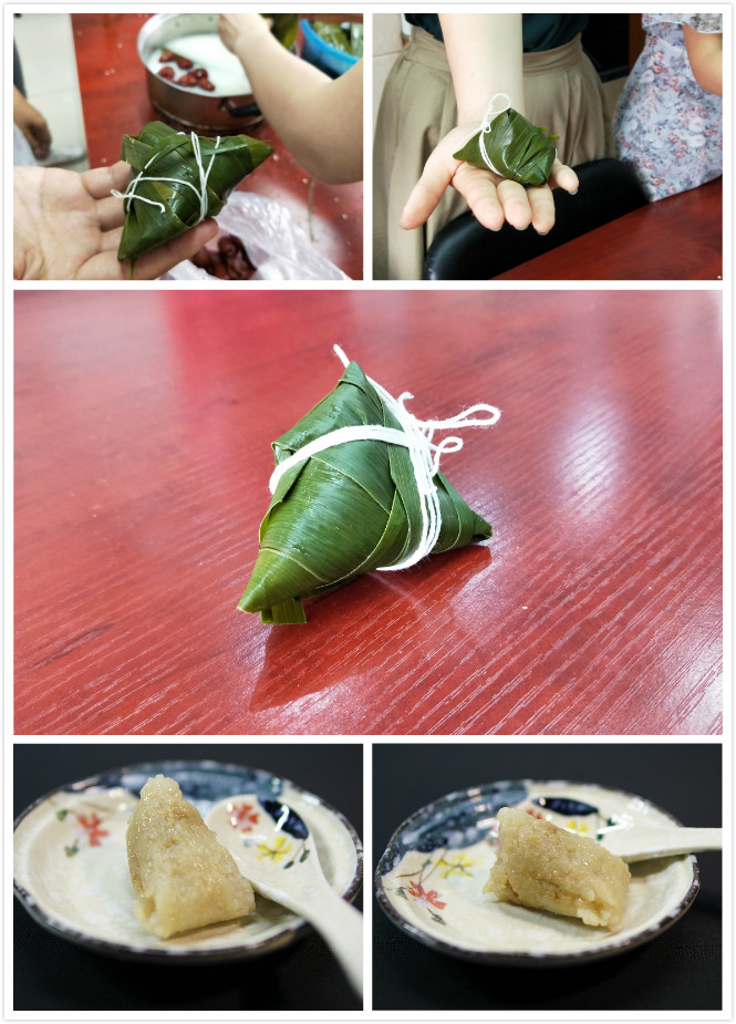活动现场,粽叶清香弥漫,糯米自有馥郁,各种材料都洋溢着浓浓的节日气息。全体师生欢声笑语,共话端午习俗,其乐融融。只见粽叶迅速被团成漏斗状,晶莹的糯米滑入其间,甜蜜的红枣安然静立,棉线在手中翻转飞舞,转眼就做好了一个个诱人的粽子。同学们自是按捺不住初次包粽子的激动,粽子虽小,但门道不少。在经历过失败和重来后,同学们的原创粽子俱都新鲜出炉。一时间粽叶舞动,棉绳穿梭,活动现场欢声笑语。折粽叶、填糯米、裹叶子、系彩线,师生们自己动手,尽情享受节日的快乐和温馨。最后,大家将煮好的粽子分发给更多的同学,将这一份节日的祝福送给更多的人。