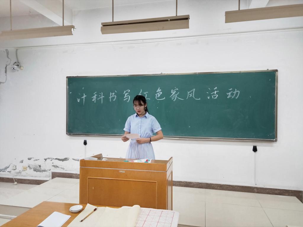 在长安校区文津1402教室举办了书写中国之书写红色家风活动。学院团委书记郭康凌、辅导员陈应权与翰墨书香书法培训班全体成员参加了活动。此次活动由学院团委组织部宋澳华同学主持。