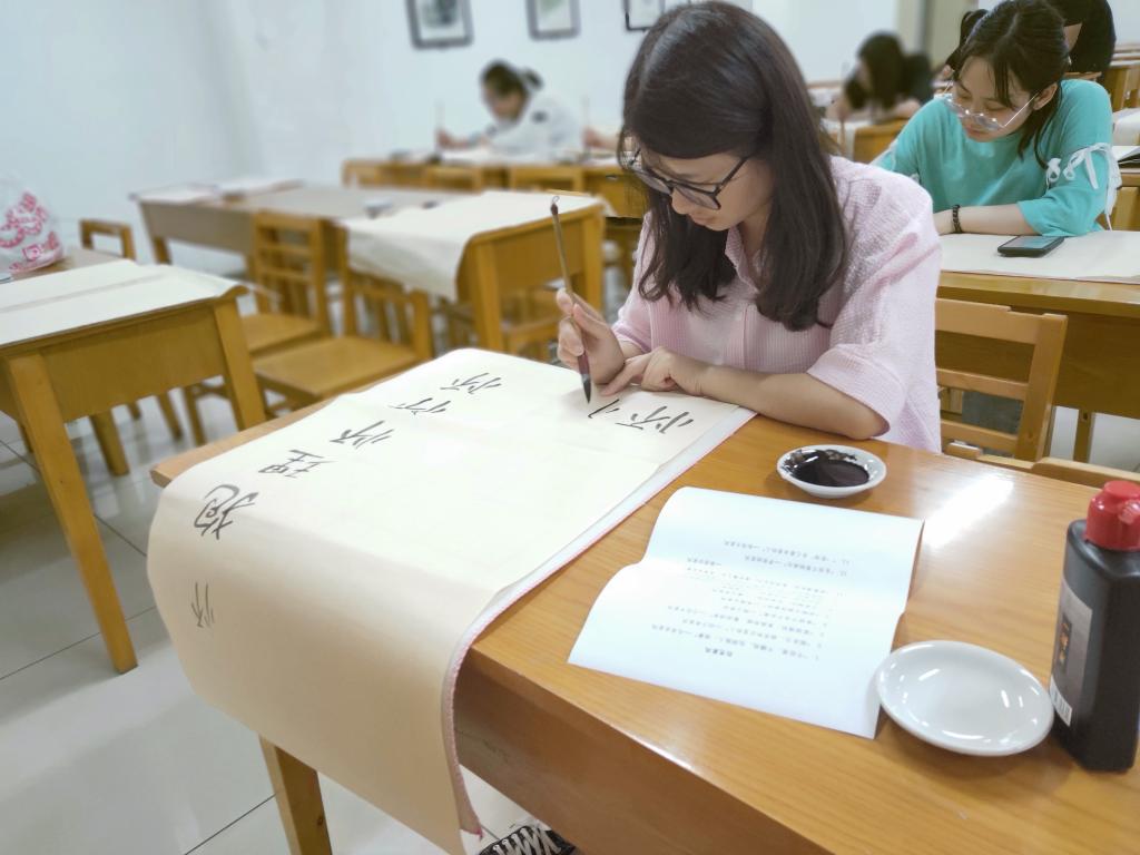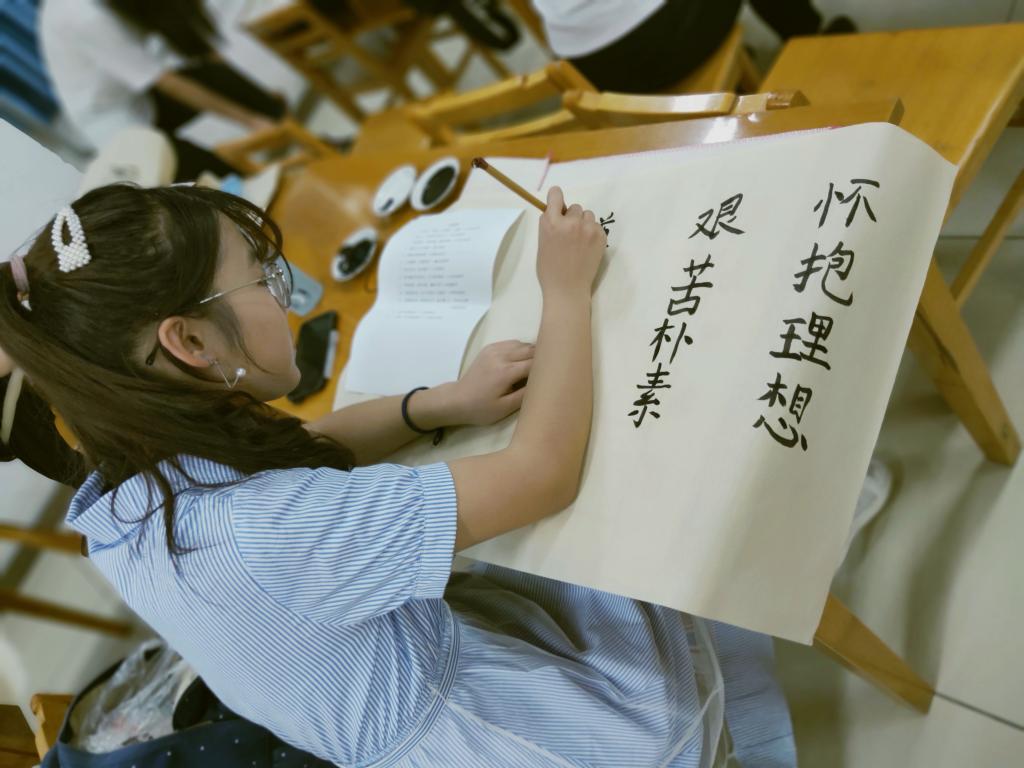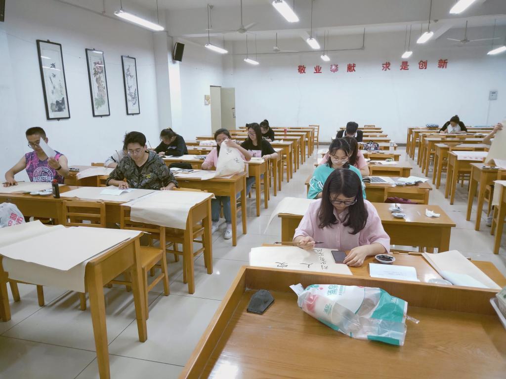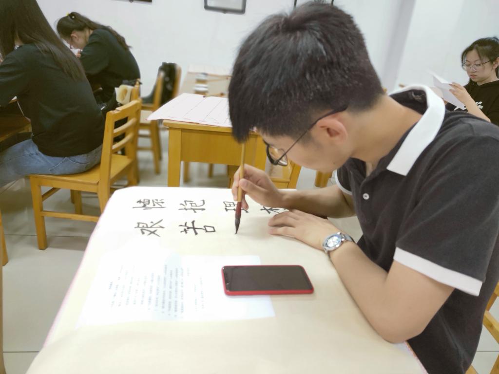 活动中,同学们专注认真尽情展示书写功底,反复修改、精益求精,努力呈现出一份令自己满意的作品。指导老师张勇讲解了书写的排版问题及署名的注意事项,指出部分同学的作品架结构合理、笔画流畅、分布均匀、熟练细腻。