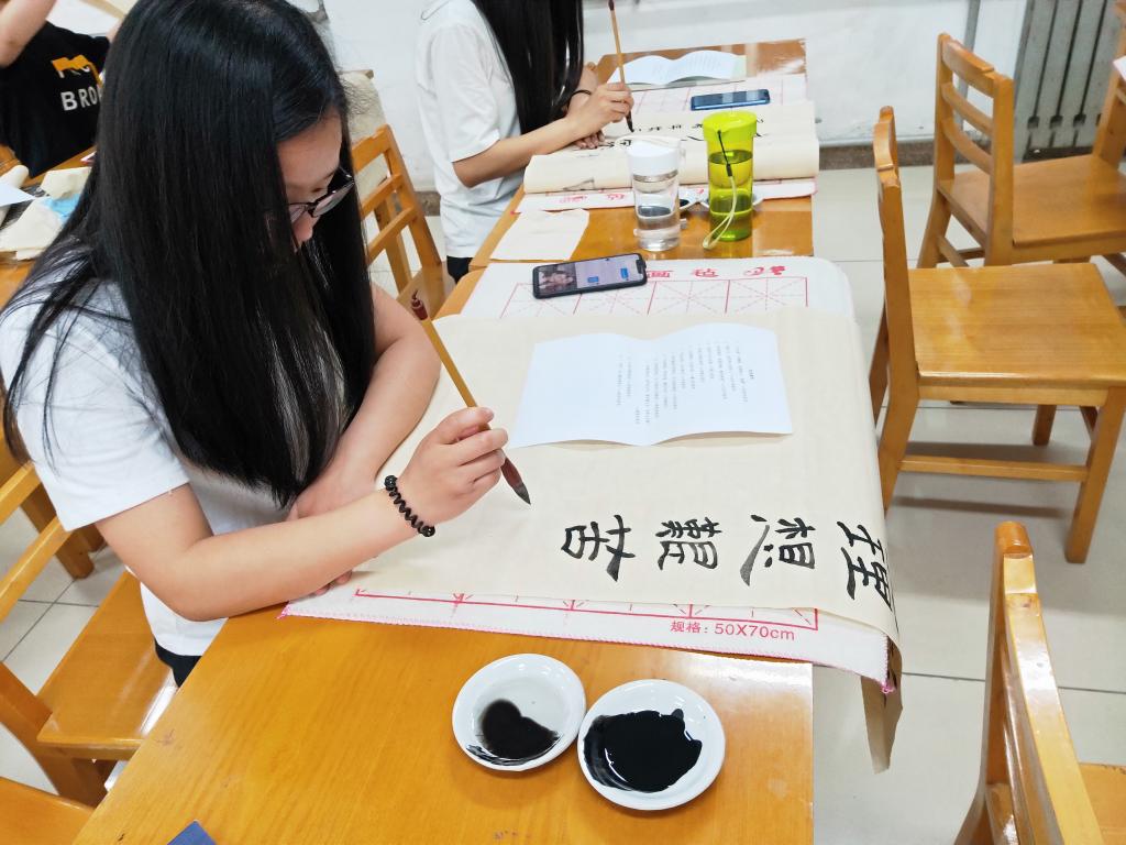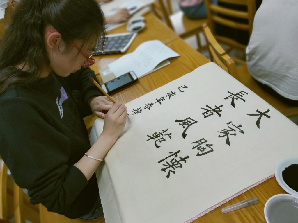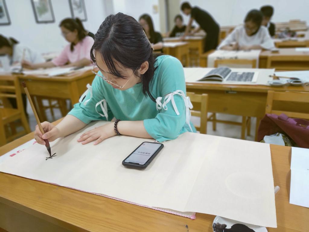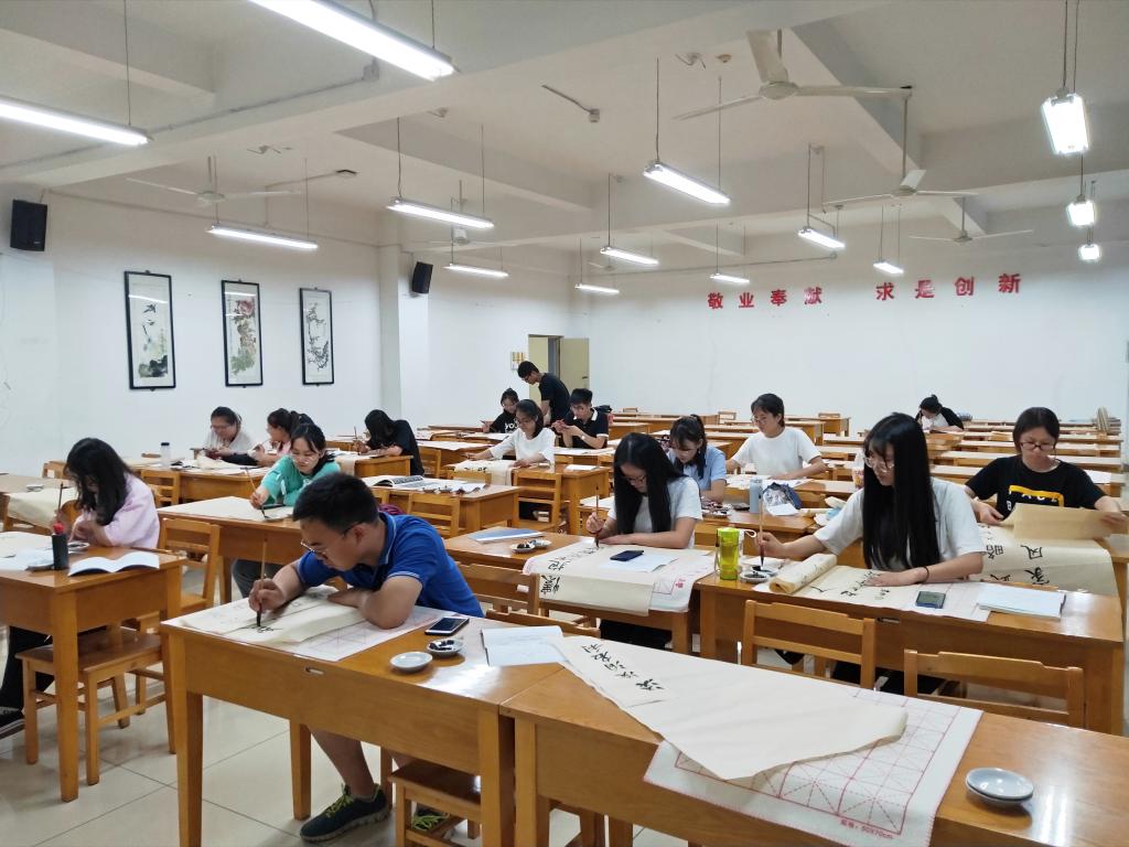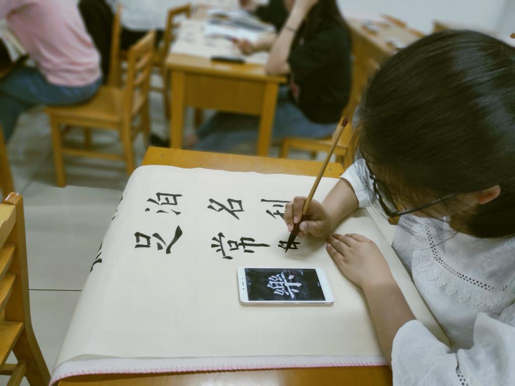 活动中,同学们专注认真尽情展示书写功底,反复修改、精益求精,努力呈现出一份令自己满意的作品。指导老师张勇讲解了书写的排版问题及署名的注意事项,指出部分同学的作品架结构合理、笔画流畅、分布均匀、熟练细腻。