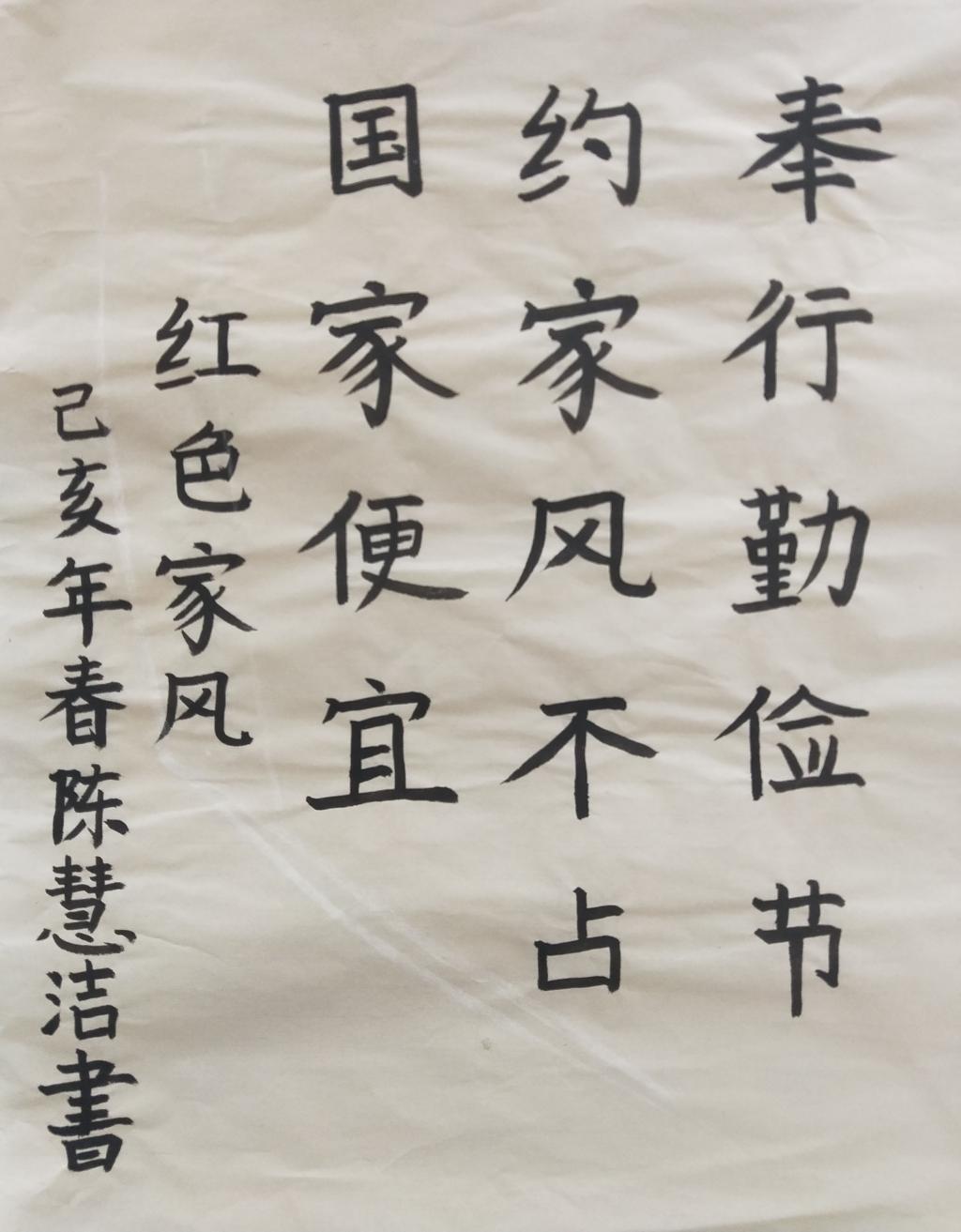 通过这次书写红色家风的活动,加深了同学们对共产党人红色家风的了解,学习了习近平总书记“继承和弘扬革命前辈的红色家风,向焦裕禄、谷文昌、杨善洲等同志学习,做家风建设的表率”这一重要论述精神,更加深刻地理解了一代代共产党人在革命、建设、改革的岁月中所建立的和倡导的优秀品质。