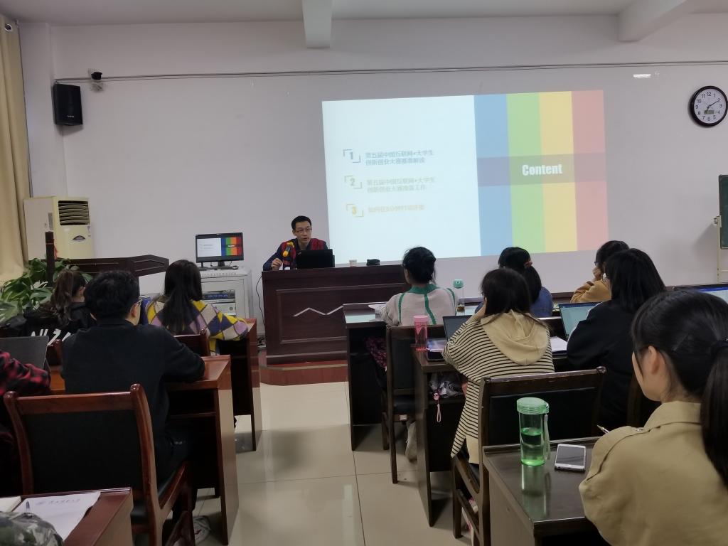 学生做互联网+大学生创新创业大赛赛事解读。解读会由2017级本科生辅导员陈应权主持,肉漫画