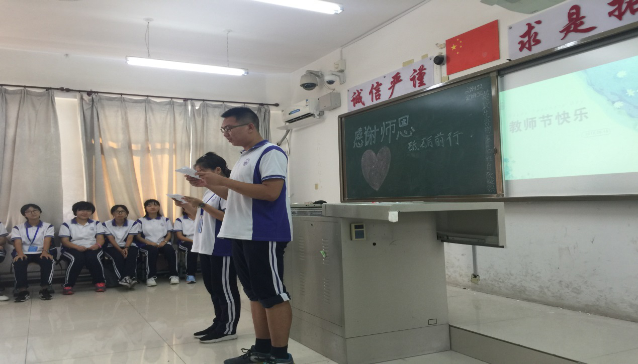 9月10日,2015级师范生在各自实习的中小学课堂上,积极组织主题班会活动,鼓励中小学生勇敢地向老师们表达自己的感恩之情,教育学生不仅要在教师节感恩老师,还要在平时的生活和学习中,将尊敬师长变成一种优秀的习惯,更要努力学习,不辜负老师的教导,并呼吁中小学生能够传承尚学之风,弘扬尊师之道,带动更多的人去尊敬每一位老师,让尊师尚学之风充满整个校园。