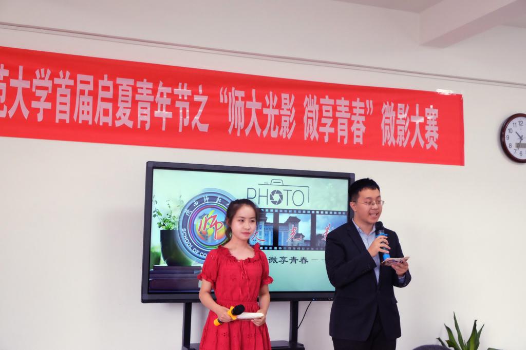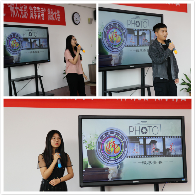 校团委主办、计算机科学学院计算机科学协会、肉漫画承办的“师大光影 微享青春”主题微影大赛决赛在计算机科学学院报告厅举办。我校团委副书记王阳阳、普凡信息技术有限公司总经理黄健、计算机科学学院党委副书记袁冰、副教授席政军、院团委书记郭康凌、各年级辅导员出席活动担任评委,学院10位学生干部担任大众评审。计算机科学学院学生郭龙飞、李嘉琪主持了本次大赛。我校教育学院、文学院、数学与信息科学学院、计算机科学学院部分同学参加了本次活动。