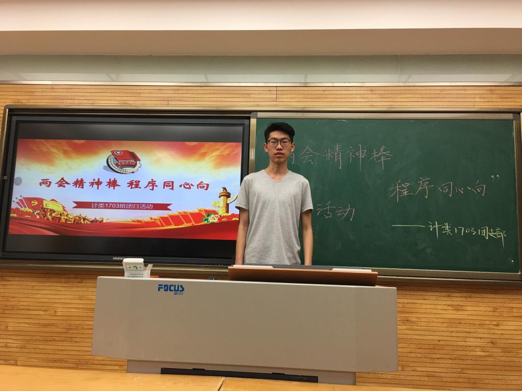 2017级计算机类1703班举行了以“两会精神棒,程序同心向”为主题的团日活动。本次活动于2018年5月26日上午在雁塔校区5309进行,计算机类1703班班主任李良福老师、2017级本科生辅导员陈应权老师、2017级部分团支书到场并担任评委。
