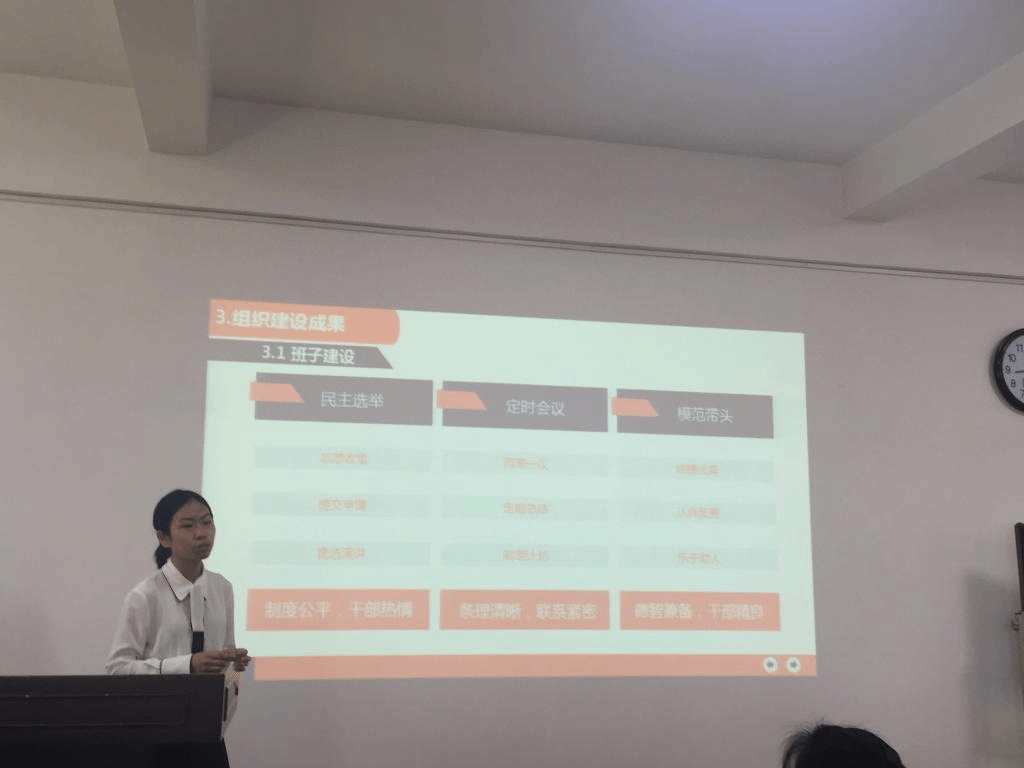 共青团工作考核办法》《关于2017-2018学年共青团创建评优工作的通知》的精神与评选细则,结合现场答辩情况、平时工作表现等,对五四红旗团支部、优秀团支书及优秀团干部三个奖项进行全面考核。答辩现场,各团支部从支部建设、组织建设、主题活动等方面进行详细介绍,各团干部从思想、学习、工作、生活等方面进行阐述,评委从团组织生活安排等方面对各团支部及团干部进行提问互动。
