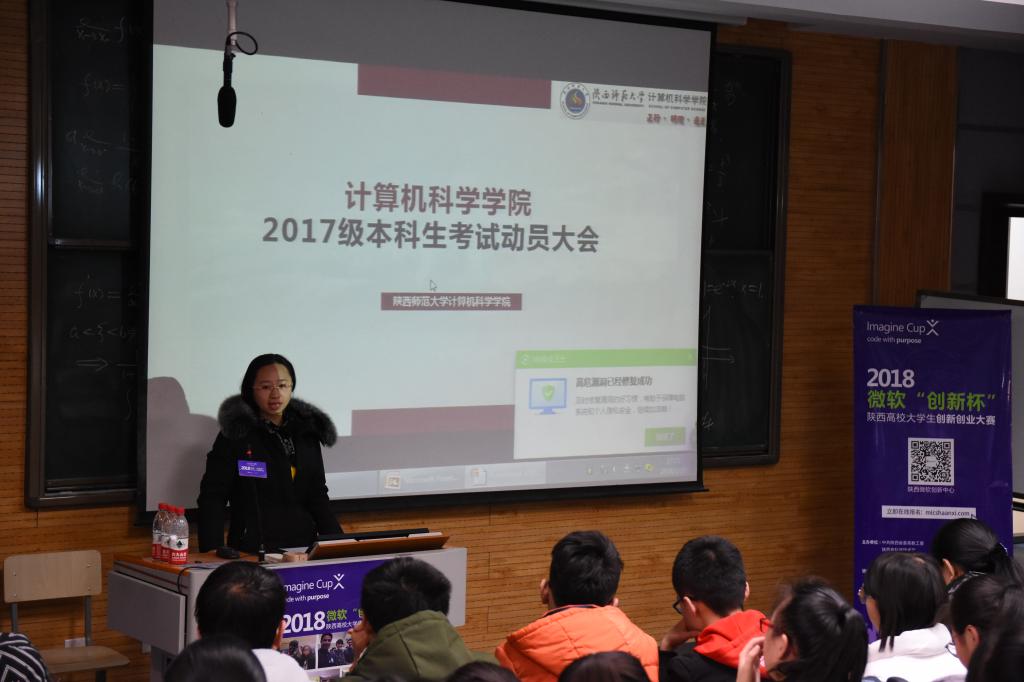 2017级辅导员陈应权老师向同学们简明扼要的指出诚信考试的重要性。随后,副院长马苗老师强调了召开考前动员大会的必要性。她指出,各个同学都要认真贯彻考试工作的相关规定,严抓考风考纪,以考风促学风。继承优良的校风、学风、考风。随后,党委副书记袁冰老师针对考试纪律作了重要说明,提倡大家以诚信考试为荣,以违纪作弊为耻。接着,陈应权老师向大家提出了几点复习建议,并再次强调诚信考试的重要性,又向我们详细说明了学业警示制度。最后马苗副院长和袁冰副书记以及陈应权老师向全体同学们送出了真挚的祝愿,希望大家能考得一个好的成绩,回家过一个好年,动员会在同学们热烈的掌声中圆满结束!