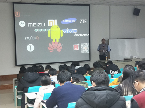 本次讲座主要分为三部分,首先,栾老师讲述了当今互联网时代下的变化,从手机的发展引入,并列举了当今时代下互联网+的产品发展的现状。其中,老师着重介绍了VR,人工智能,智能家居以及电子商务的发展,突出了时代的改变从未停止。其次,栾老师就互联网对人们生活的影响向同学们讲述,涉及到支付、游戏、直播等方面。最后,老师提出机遇成就梦想,作为计科院的学生,我们更要有一技之长,在业余的时间多学习一些编程语言及开发技术,为自己今后的就业做好准备。
