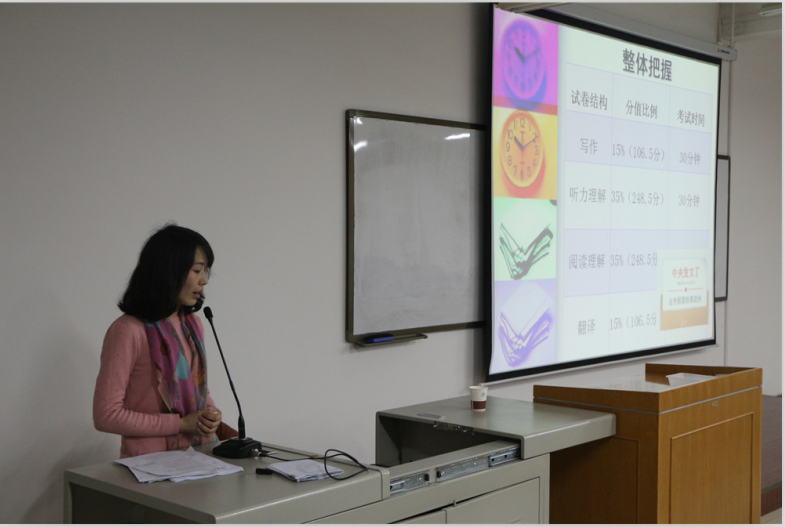 “携爱·助力成长”志愿服务队在文津楼419教室举办四六级考前指导讲座。本次讲座邀请到我校外语学院研究生、学校兼职辅导员李盼宁做辅导。讲座由辅导员郭康凌主持。