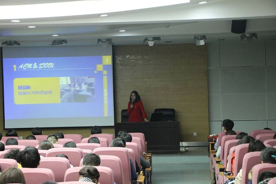 首先,我校ACM竞赛队教练王涛老师向同学们介绍了ACM-ICPC(即ACM国际大学生程序设计大赛)的竞赛规则、赛制、我校ACM队的发展历程,使在场同学了解到了这个号称“程序设计界的奥林匹克”的国际性赛事。现场大部分同学对于此项赛事表现出了浓厚的兴趣。