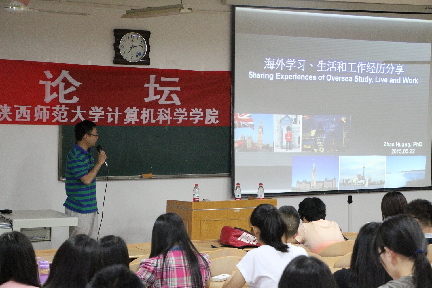 青年教师黄昭博士作为嘉宾,跟学院师生分享在国外访学期间的经历和感受。学院团委书记胡雯洁老师和一百多名同学参加了活动。