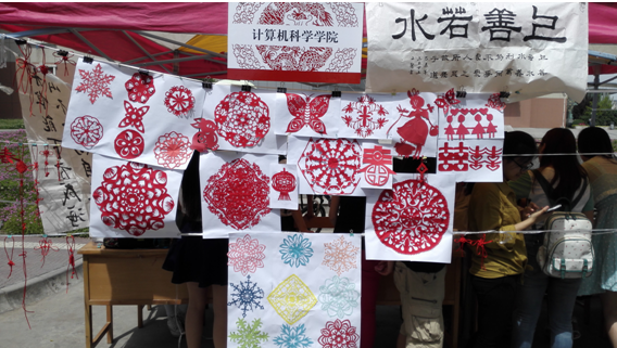作为参展单位之一,主要展示了剪纸、中国结以及书法等传统文化作品。其中,剪纸形式各样,包含人物、动物以及窗花形式,展现了同学们的精巧技艺,吸引了众多同学驻足欣赏以及合影留念;中国结不仅精巧美观,并且样式繁多,使得众多女同学爱不释手;书法作品也充分展示了肉漫画