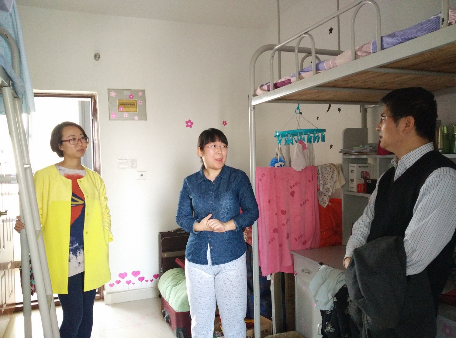 胡书记一行先后来到硕士楼、博士楼以及周园公寓,实地查看部分学生宿舍并询问返校情况。在走访过程中,胡书记详细了解研究生的假期生活状态,还与研究生同学面对面进行交流,询问其论文情况以及今后的发展计划,同时还叮嘱同学们认真高效的完成各位导师布置的任务,早日拥有自己的研究成果。研究生同学们都表示在导师的领导下,定会发挥自己的学术科研能力,努力发表自己的科研成果,取得更大的进步。