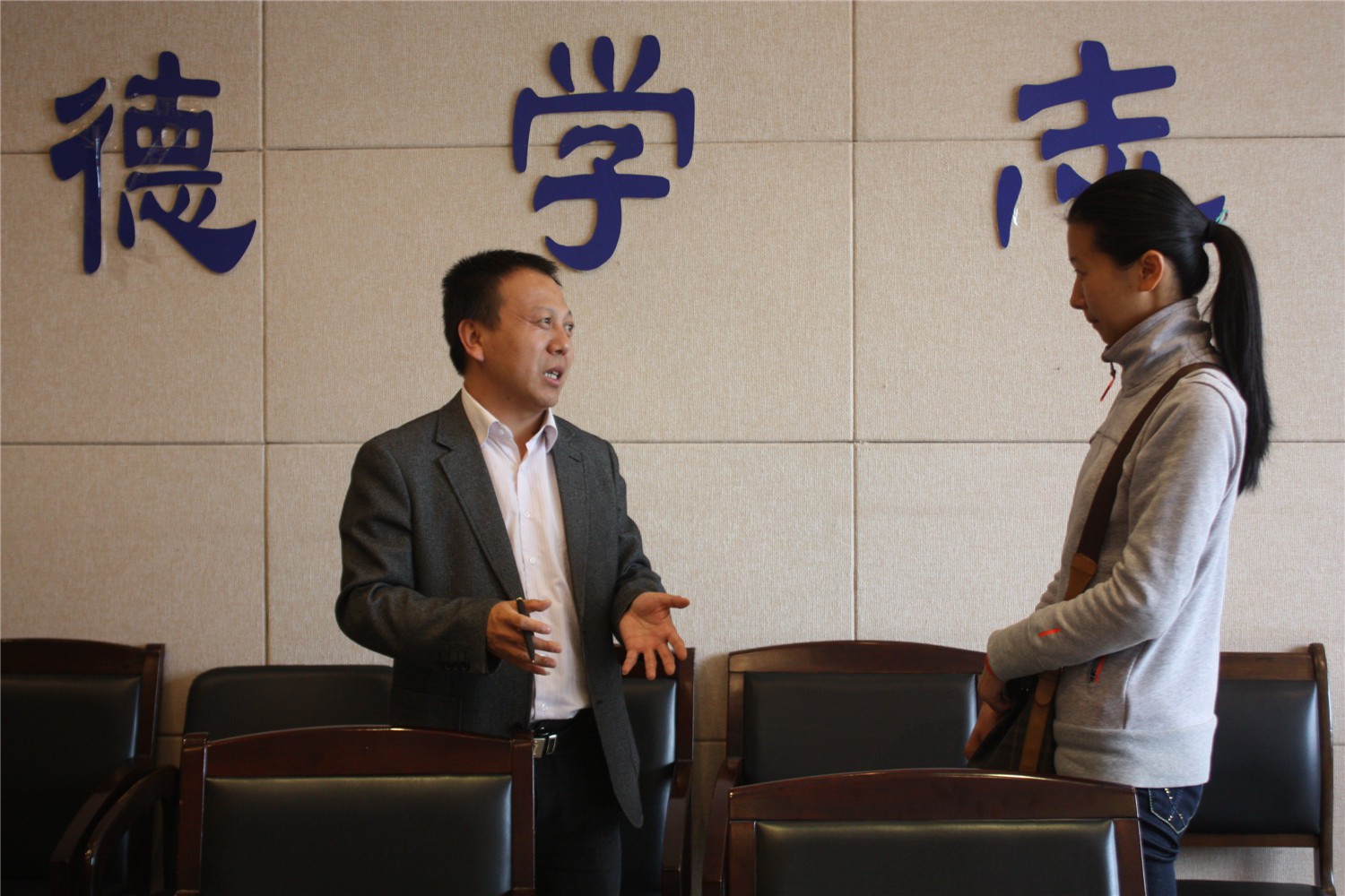 党委副书记袁冰老师热情接待了李主任一行,并与之进行了交流。