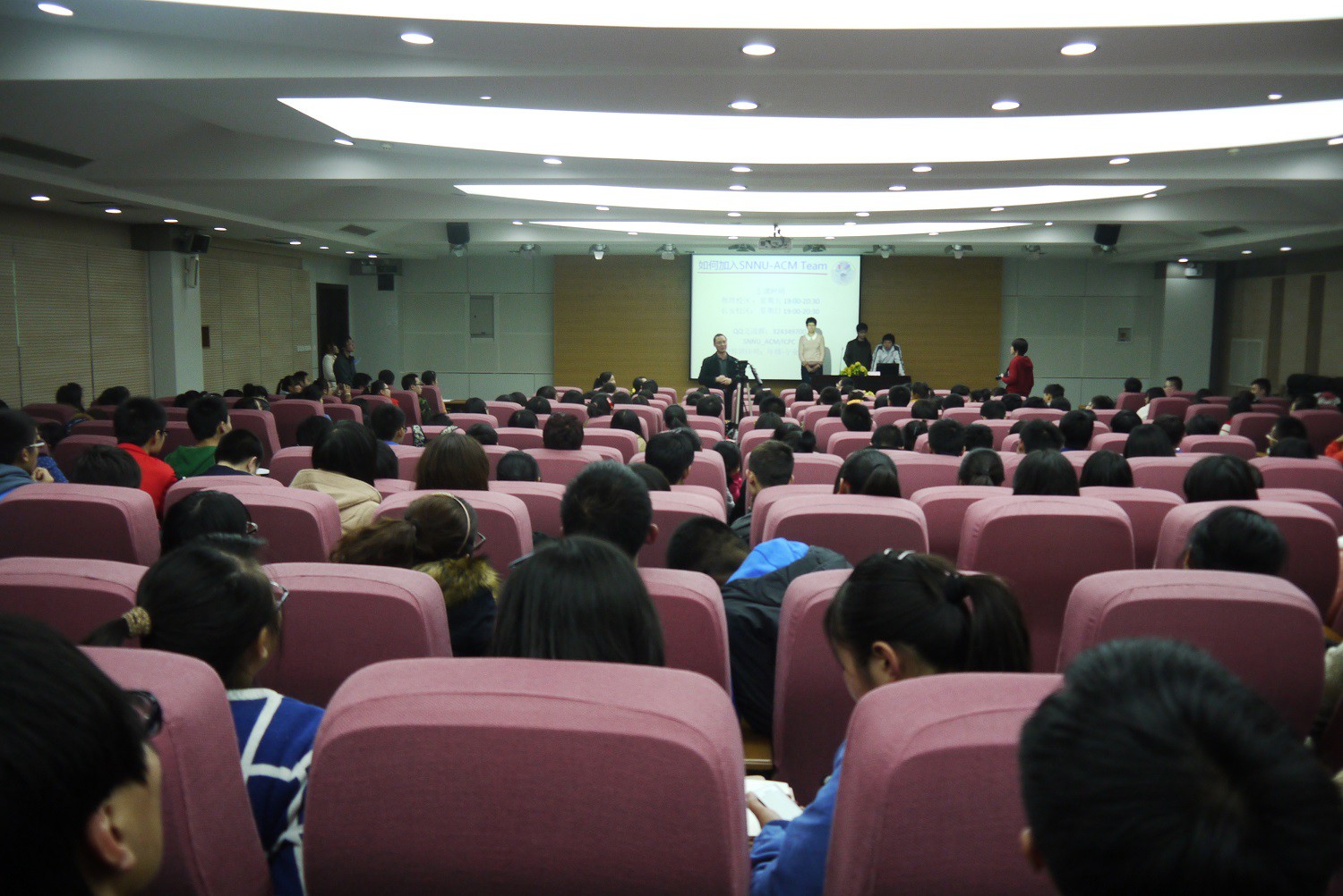 11月8日晚,ACM-ICPC竞赛雁塔校区宣讲会在崇鋈楼三层归仁堂举行,计算机科学学院副院长吴振强教授、党委副书记袁冰老师、团委书记胡雯洁老师和理工科基础教学部辅导员杨涛老师出席了宣讲会。首先,我校ACM竞赛团队成员张瑞文向在座2013级同学介绍了ACM-ICPC(即国际大学生程序设计大赛)的竞赛规则、赛制、我校ACM队伍的发展等内容,向同学们展现了一个严谨、严格,却又趣味无穷的世界,使在场同学了解到,这个号称“头脑风暴”的国际性比赛,既考验队员们的编程能力、数理逻辑思维能力,也同样考验着队员们的英语阅读能力和团队精神。我校ACM集训队由王涛老师指导,今年首次参加国内各项比赛就取得了多项优异的成绩,博得了在场同学们的阵阵掌声。