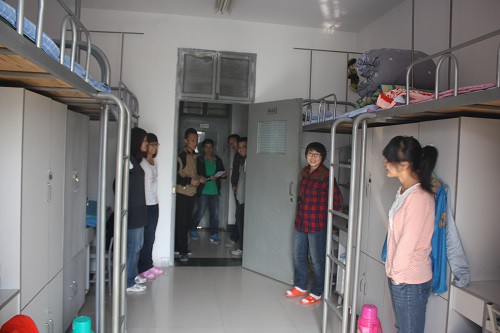 党委副书记袁冰老师、团委书记胡雯洁老师、10级和12级辅导员张冲老师、11级辅导员李勇俊老师以及学生会干部对研究生、本科生的宿舍进行了卫生检查。