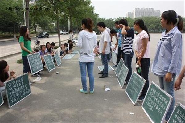 “小黑板评比”活动是由每个宿舍选出一个代表,分四轮参加比赛。参加此次比赛的男女生宿舍共有44个,以“现实是此岸,理想是彼岸……”为书写内容,进行3分钟现场粉笔字书写。