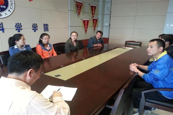 一对一就业帮扶工作的序幕。会议由学院教学副院长裘国永老师主持,毕业班辅导员郭康凌与裘老师负责帮扶的生源为宁夏、青海、陕西、广东的数名未就业毕业生同学参加了会议。