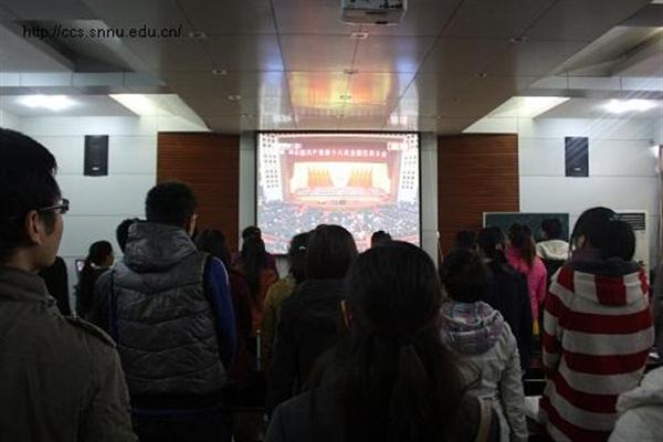 11月8日上午9时,中国共产党第十八次全国代表大会在北京人民大会堂隆重举行。计算机科学学院各学生党支部全体党员及预备党员在文津楼四层学术报告厅观看了开幕式现场直播,认真学习胡锦涛总书记《坚定不移沿着中国特色社会主义道路前进为全面建成小康社会而奋斗》的报告。计算机科学学院党委书记胡波、副书记袁冰、团委书记胡雯洁以及2010级辅导员张冲和同学们一起聆听了此次报告。