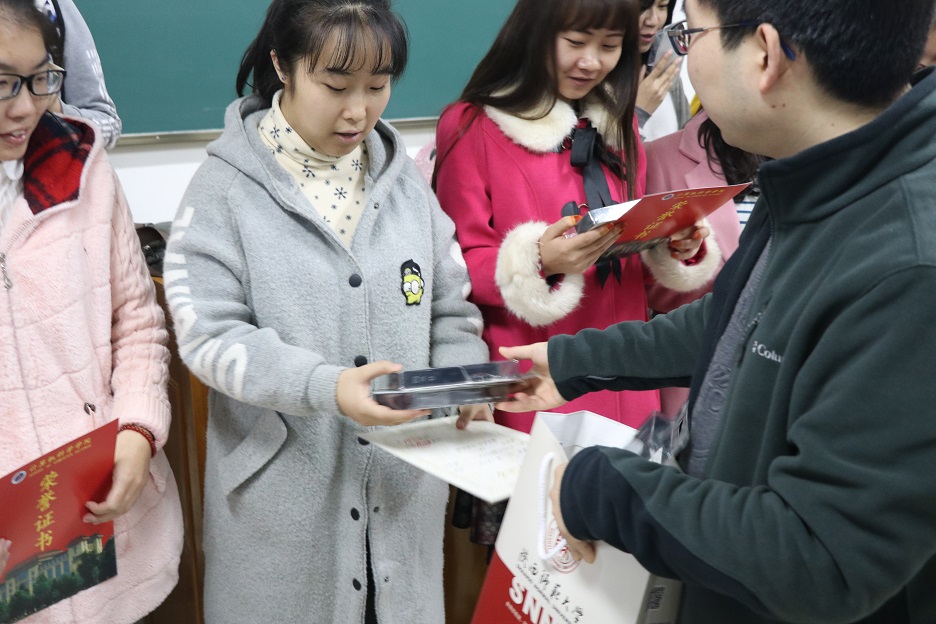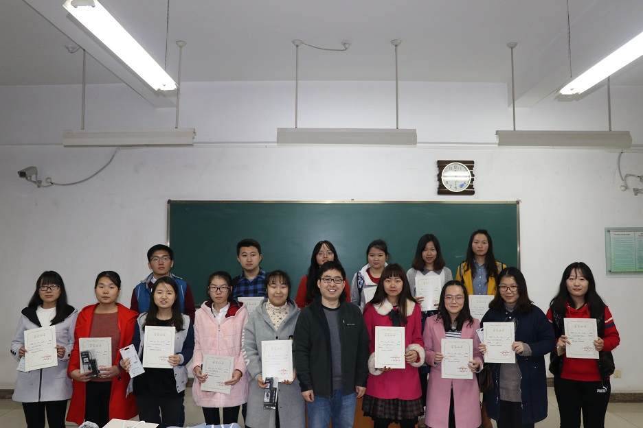 首先,张冲老师宣读了获奖同学的名单,给获奖同学颁发了获奖证书和奖品,表达了对获奖同学热烈的祝贺,肯定了同学们对待暑期社会实践活动的认真态度,希望同学们在今后的社会实践活动中能够再接再厉。其次他表示,希望同学们将本次社会中非常有意义的研究成果整理出来,进行项目申报,从而在本次社会实践活动中收获更多经验。