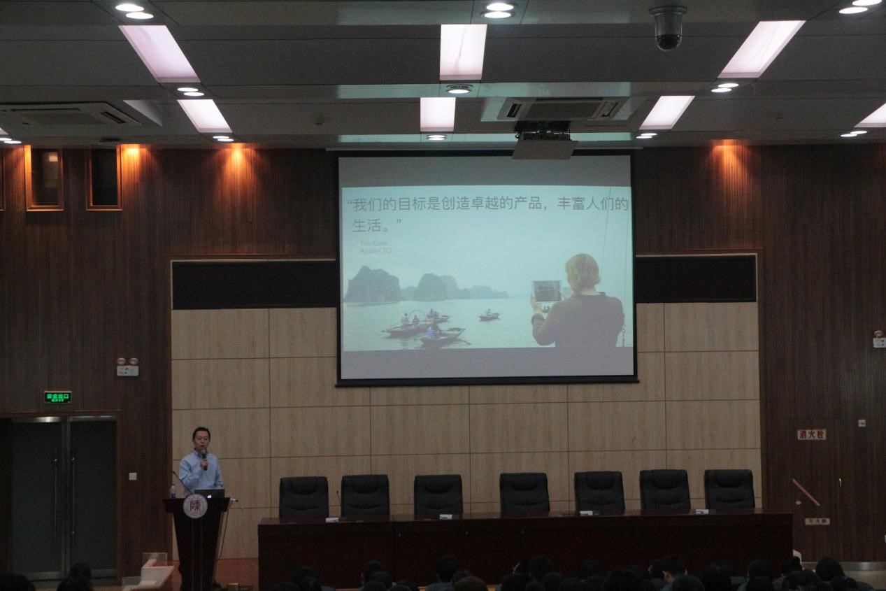 长安校区文澜楼B段一层报告厅举行了苹果专题讲座,讲座由苹果资深讲师孔文达老师主持,主要讲解苹果先进技术及理念。包括肉漫画