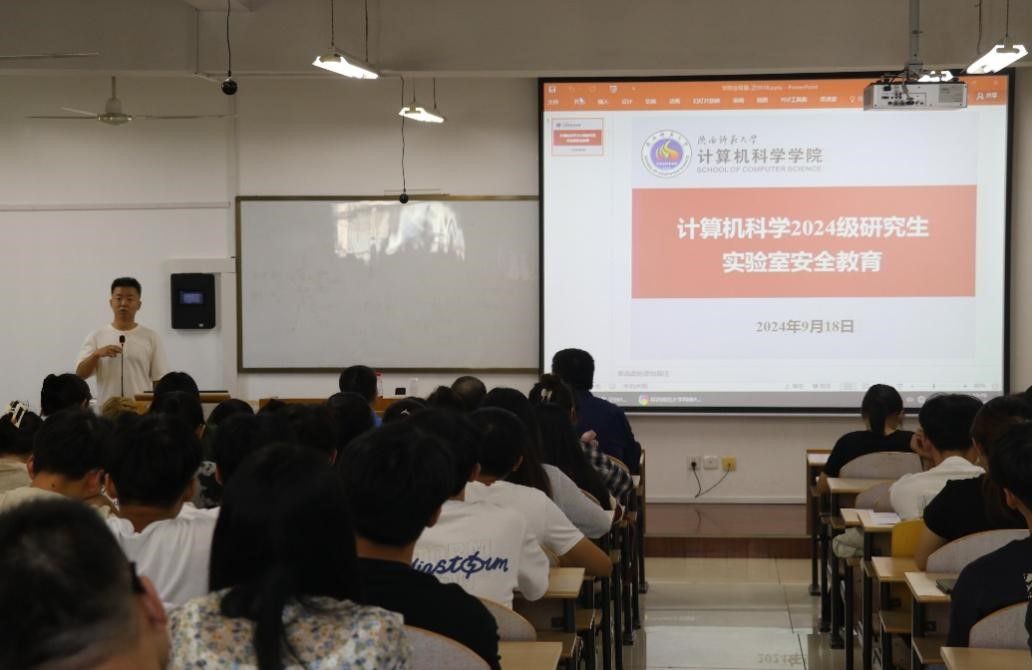 于9月18日下午在文津楼3324教室开展了2024级实验室安全教育暨研究生新生准入培训,旨在深化实验室安全文化,提升研究生新生的安全素养,确保科研环境的持续稳定。西安市五进消防站教官王璟、学院实验室主任张永福,研究生实验室负责人蒋江红,人工智能实验室负责人张汇泉及2024级全体研究生新生参加了本次培训,培训由副院长董春生主持。