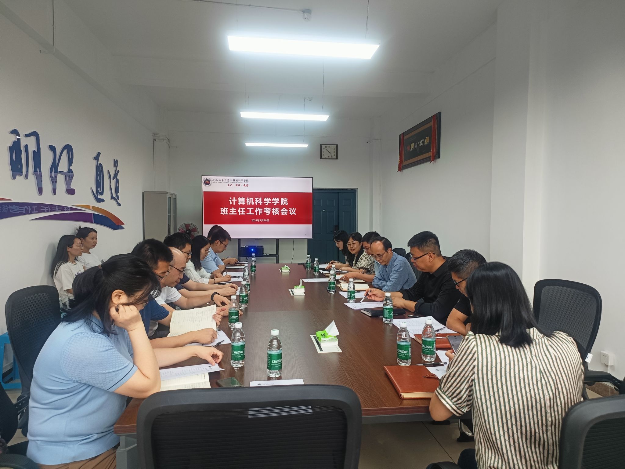李鹏介绍了班主任工作考核内容,王亮、李津、代才、任杰等4名老师分别结合各年级的特点,围绕上一学年日常工作、班级管理、思想引领、学业指导、存在问题等方面进行了述职汇报,学院班主任工作小组对4名班主任工作进行考核测评。董春生介绍了《计算机科学学院班主任管理办法》和新聘任的班主任名单。