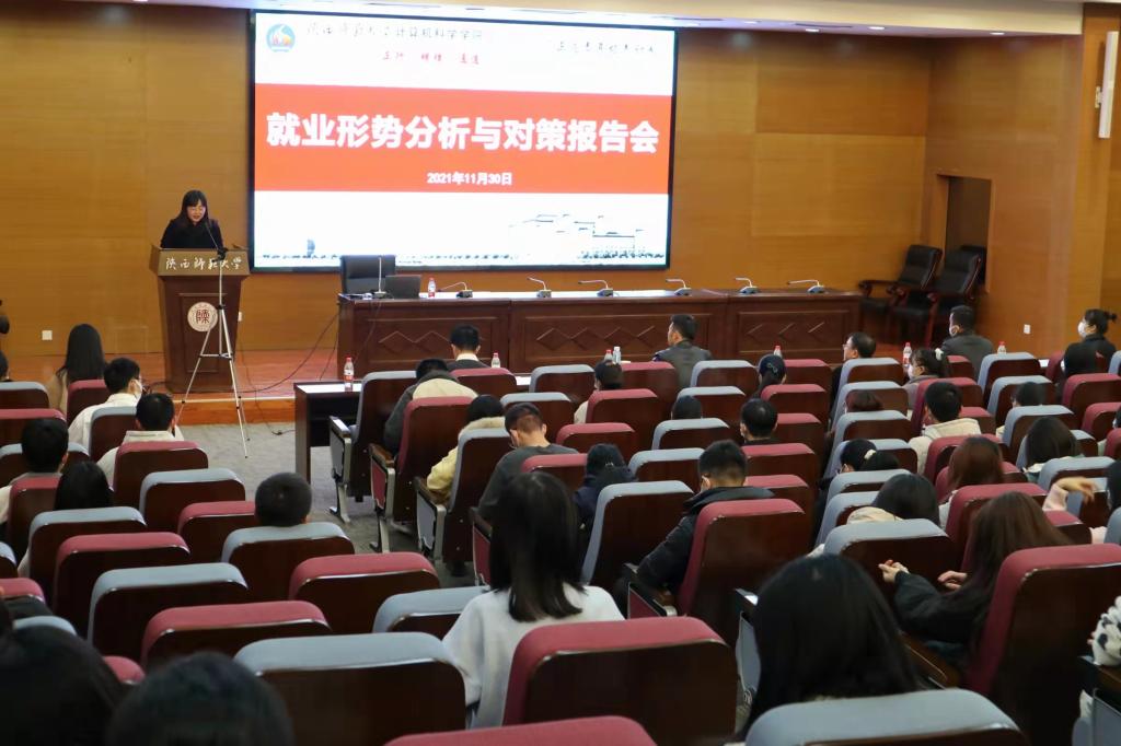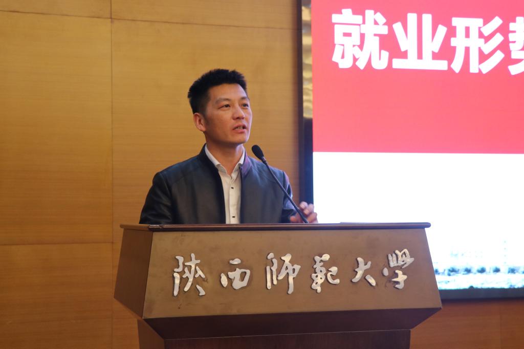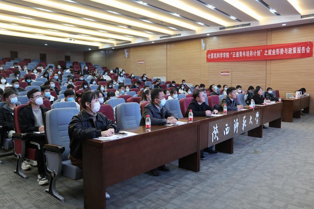 “正道青年培养计划”之就业形势分析与对策报告会在长安校区文汇楼二层211报告厅举行。我校学生就业指导服务中心主任雒朝梁应邀担任主讲。学院党委书记王耀明、团委书记何文曦、辅导员蒋江红、田海东、梁星宇、陈坤正、任仰、2022届毕业班研究生、本科生在现场参会,其他年级研究生、本科生以线上方式参加了会议。报告会由学院党委副书记郭康凌主持。