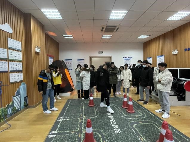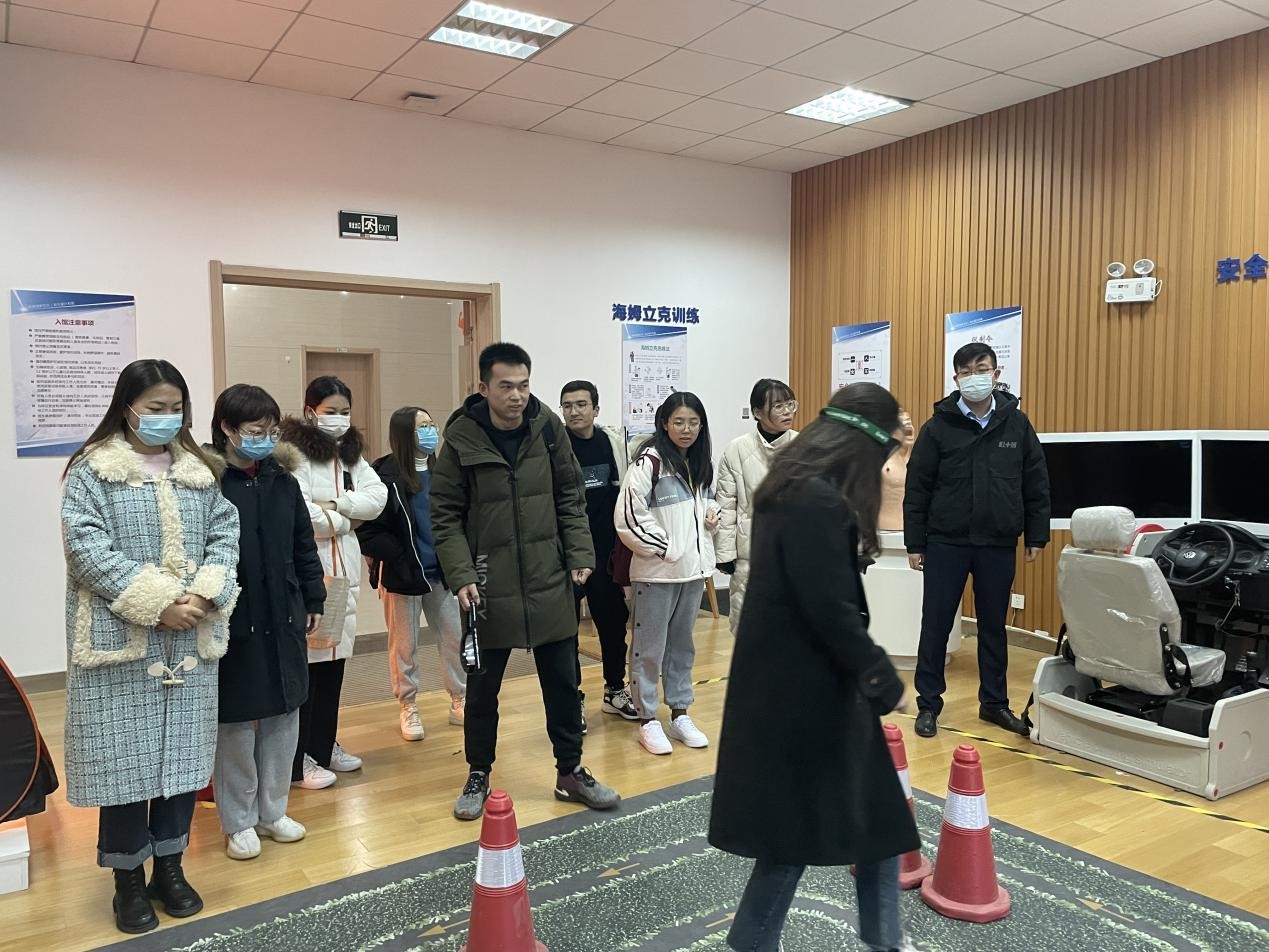 部分研究生、本科生前往学校新勇学生活动中心安全教育VR超感体验室进行参观学习,研究生兼职辅导员申雨梦和本科生辅导员陈坤正带队。