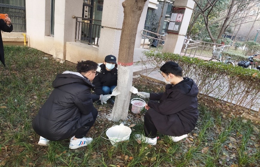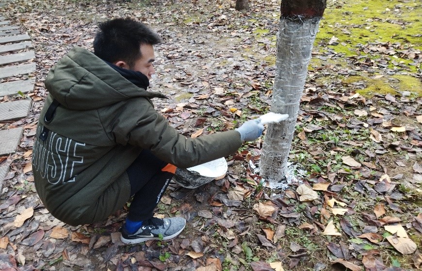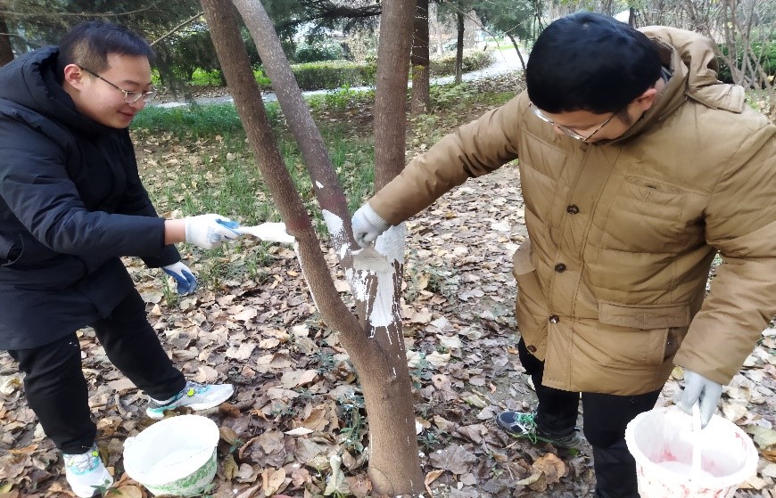 研究生会生活部组织研究生参加给树木刷白漆防虫害劳育活动,本次活动在肉漫画